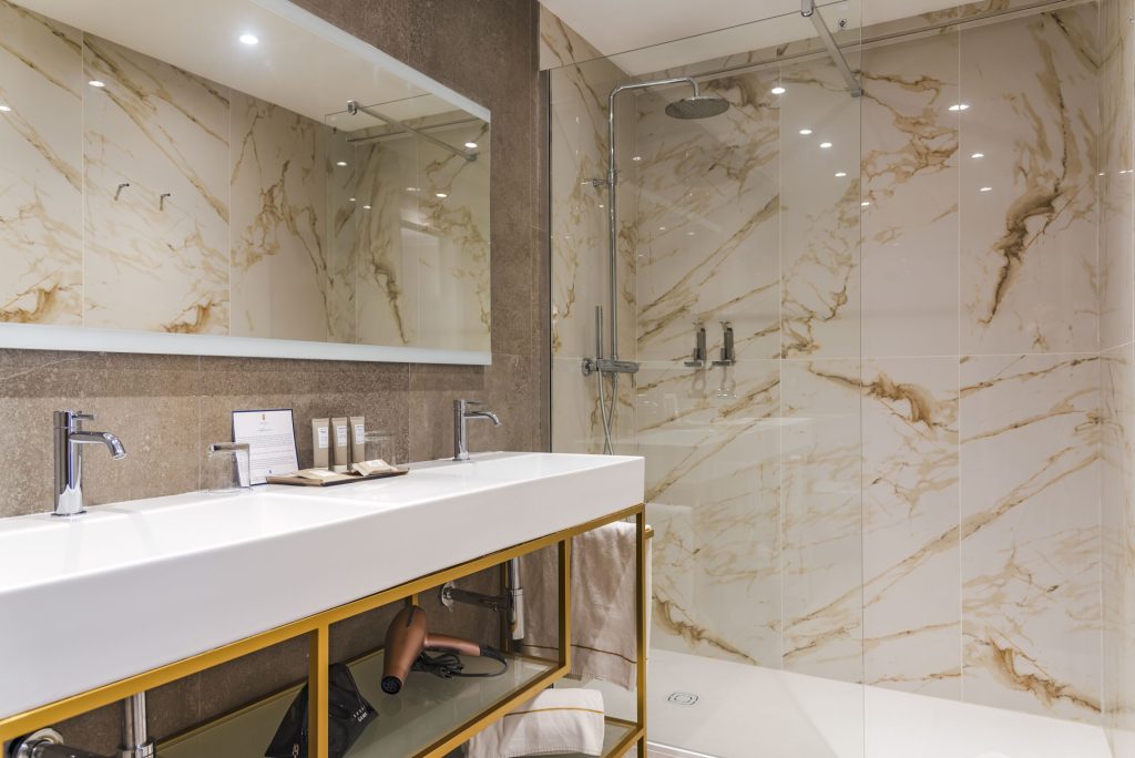 Bestehend aus einem einzigen Raum und einem komfortablen Badezimmer mit zwei Waschbecken, bietet es einen großen Balkon mit Panoramablick auf den Park.