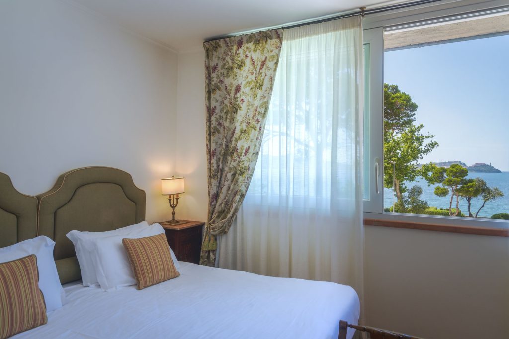 It consists of a double bedroom with a large sliding window overlooking the sea and the